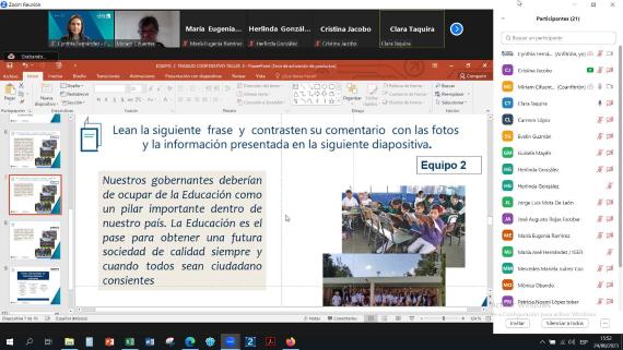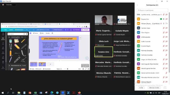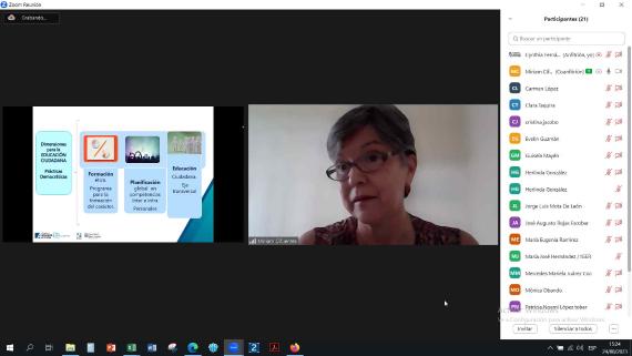 La docente del taller: Miriam Cifuentes expuso sobre el tema: Ciudadanía global, derechos humanos y valores democráticos.