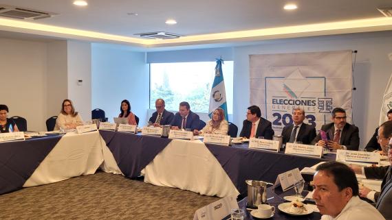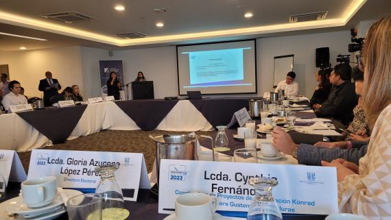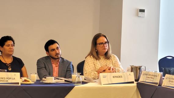 Durante el diálogo, el Dr. José Moreno, director del Instituto Electoral del TSE se refirió a la función formadora y capacitadora del TSE como un elemento importante para fortalecer la democracia en Guatemala.