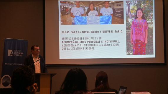 El Prof. Dr. Stefan Jost, Representante de la Fundación Konrad Adenauer para Guatemala y Honduras, brindó las palabras de bienvenida. Se contó con la presentación de 3 organizaciones: 1. El Lic. Christian Stich, Director del Proyecto Ija´tz, dió a conocer su programa de becas. 2. El Lic. Emerson Salguero, Director organización Involúcrate, abordó sobre las actividades su organización. 3. El Dr. Jürgen Spott, Director de German Business School/Formación Profesional Dual Alemana también dió a conocer sobre qué realiza GBS en Guatemala y con qué empresas trabajan.