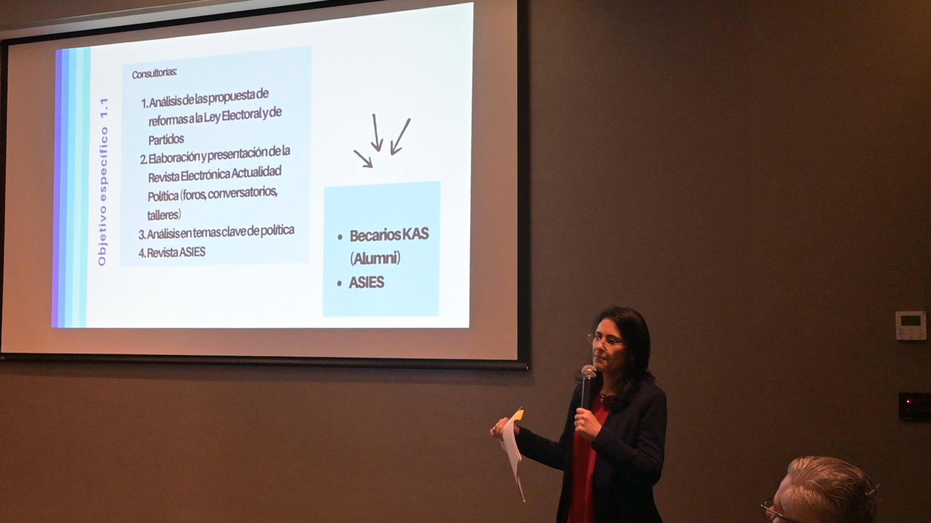 Posteriormente, las coordinadoras KAS, la Licda. Cynthia Fernández, Licda. Virginia Barrios, Licda. Annalissa Tabarini, presentaron los proyectos de los socios KAS 2023. Se dividió a los socios KAS Guatemala en 6 mesas de trabajo por objetivos, para discutir sus actividades, crear sinergias y con qué instrumentos y cuándo podrían medir el impacto de cada uno. Finalmente, en la plenaria se presentaron los insumos abordados en la discusión para medir impactos y cada grupo expusó sus resultados. Se contó con la participación de 33 personas (representantes de los socios KAS Guatemala).