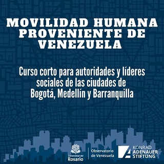 Movilidad Humana Proveniente de Venezuela, es un espacio de diálogo en acceso remoto entre académicos y especialistas con líderes y protagonistas de la vida local colombiana, políticos, funcionarios de los gobiernos locales, concejales, miembros de los cuerpos de seguridad, representantes locales de organizaciones internacionales, representantes de organizaciones de la sociedad civil y periodistas, una introducción breve y sucinta a la movilidad humana proveniente de Venezuela, sus retos y oportunidades en Colombia y las ciudades receptoras.