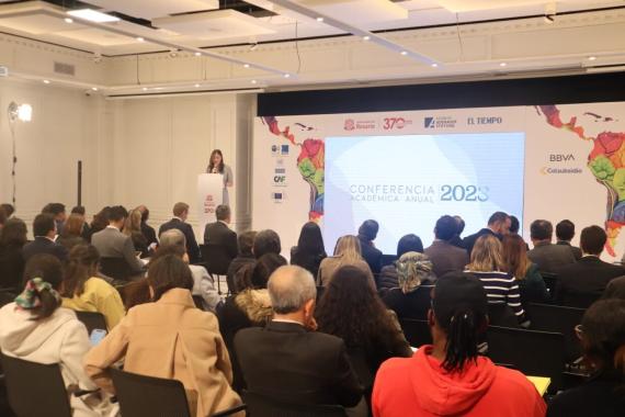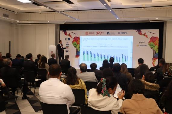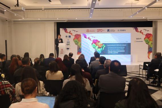 Allí, se habló de los retos y oportunidades para hacer una transición justa y verde en América Latina y el Caribe, a pesar de que se prevé una ralentización del crecimiento de la región con un promedio inferior al 1%, agudizado por los altos niveles de pobreza y una inflación creciente. No obstante, Colombia es uno de los países con mejores índices de recuperación y con lineamientos positivos en materia de transición energética debido a que el país posee una matriz de energía en su mayoría limpia y de bajas emisiones de carbono. La transición debe ir de la mano de financiamiento, gobernabilidad, asociaciones multisectoriales, la generación de empleos y modelos de negocios verdes y el fortalecimiento de mecanismos como los bonos verdes. Respecto a los retos está el hecho de que América Latina y el Caribe sufrirá el mayor y más significativo impacto producto del cambio climático, empero una de las mayores oportunidades en materia medioambiental por la biodiversidad presente en el territorio.