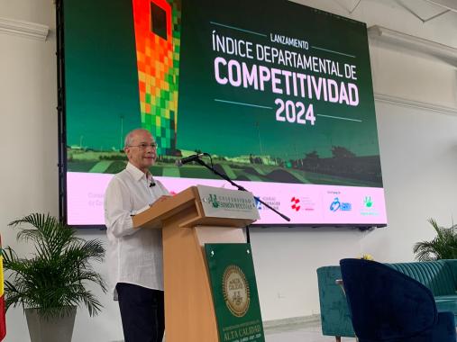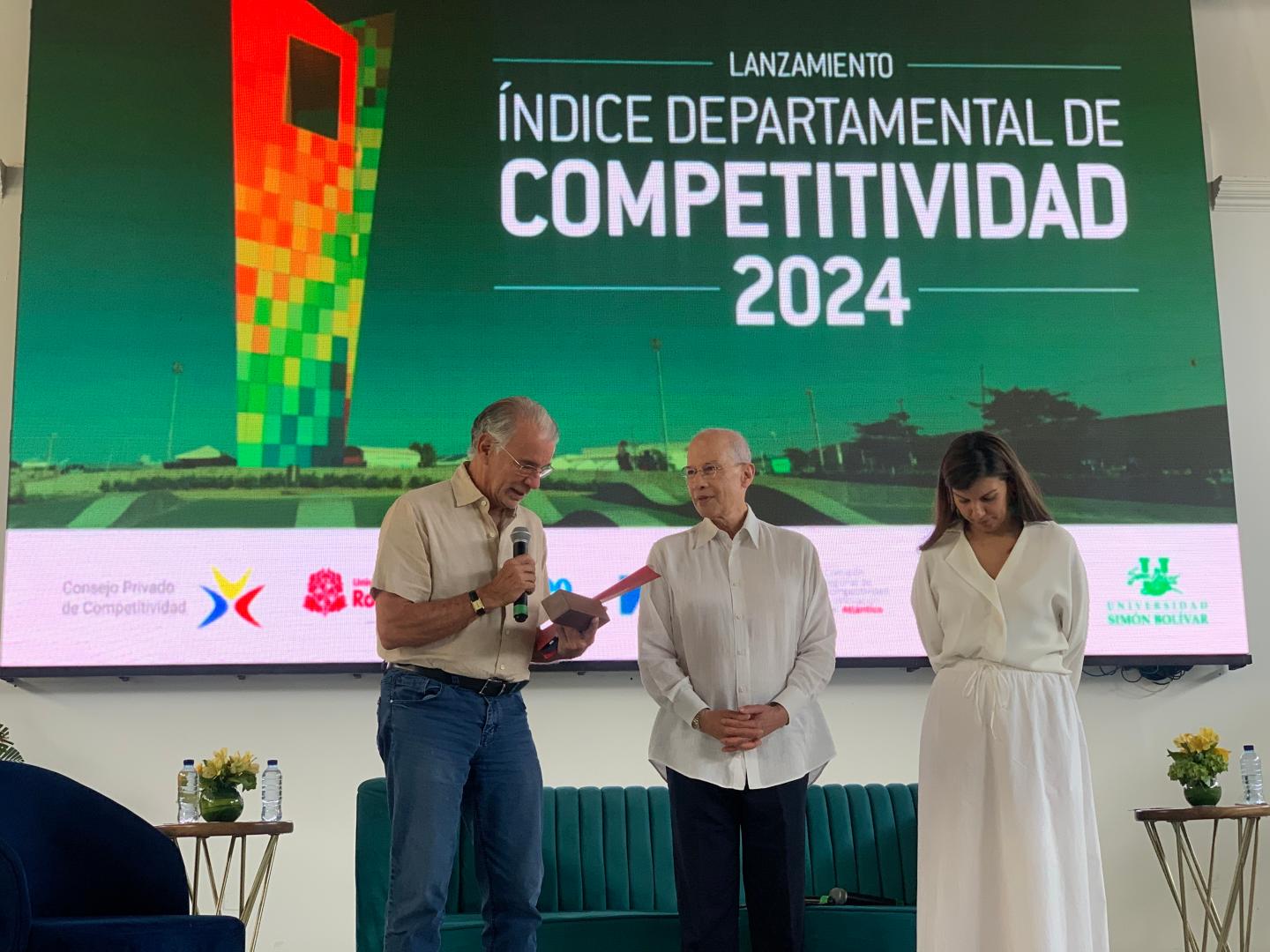 Luego, Daniel Gómez, Vicepresidente del Consejo Privado de Competitividad, presentó el Índice Departamental de Competitividad 2024, destacando su enfoque en 102 indicadores duros distribuidos en pilares como capital humano, eficiencia de mercados y contexto. Además, destacó que se introdujo un cambio metodológico clave este año, que fue la utilización de una banda fija basada en valores históricos para facilitar la comparabilidad interanual de los indicadores por departamento.