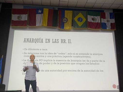 Durante el primer día del seminario se realizaron cuatro ponencias y un taller práctico. En el primer bloque de ponencias, el Dr. Eduardo Pastrana Buelvas, profesor de la Universidad Pontifica Javeriana, se dirigió a los estudiantes con su exposición sobre la identidad y los intereses nacionales, en la que señaló que la identidad nacional juega un papel fundamental para los actores dentro de las relaciones internacionales, pues define los intereses de una Estado y por ende, su política exterior. Los valores, símbolos y héroes de un Estado son componentes de su identidad nacional por lo que tenerla definida permite reconocer y transitar riesgos, así como formular una proyección de país hacia afuera.