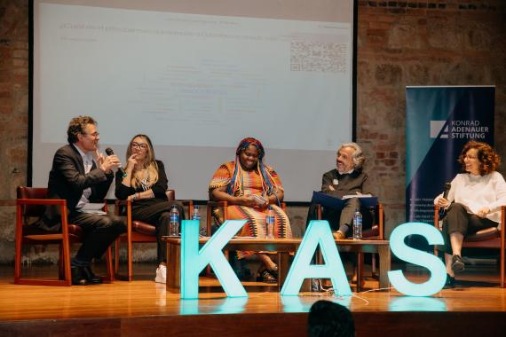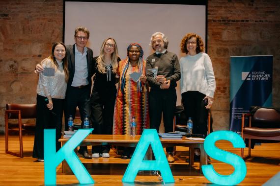 A continuación, se desarrolló un panel con la participación de Juan Urbano, cofundador de la empresa Kakaoteros; Robert Max, guionista y codirector de la serie Postconflicto Corp; Eduardo Arango, productor de la misma serie; y Natalia Roa, directora de comunicaciones de la Fundación Compaz. Este panel, moderado por Angélica Torres, coordinadora de proyectos y comunicaciones de la KAS, ofreció una reflexión sobre el proceso de paz en Colombia. Los ponentes discutieron la transición hacia economías lícitas y destacaron el rol del gobierno en la articulación con la sociedad civil para alcanzar ese objetivo. También abordaron el impacto de estos procesos en la democracia y señalaron las áreas clave para su fortalecimiento.