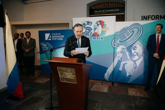 Finalmente, Stefan Reith hizo un balance de los últimos cuatro años de trabajo en Colombia, destacando proyectos significativos como la Red Estudiantil KAS, la Red Binacional de Líderes AWALA, y el programa "Podemos Ser". Resaltó la cooperación lograda mediante alianzas en áreas clave como educación, paz, seguridad, género y participación política. En su discurso, expresó su agradecimiento a su equipo de coordinadores y a los socios que hicieron posible el desarrollo de estos proyectos.