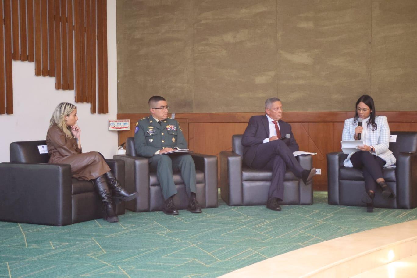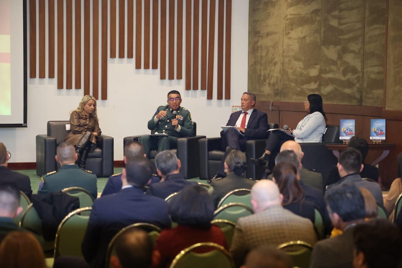 Al finalizar esta presentación general del documento, se realizó un panel en el que participaron, el General de la Reserva Jaime Lasprilla; Paula Prieto Ararat, profesional de gestión de investigación de la Escuela de Posgrados de la Fuerza Aérea Colombiana; el General Ricardo Roque, Comandante del Centro Nacional de Entrenamiento del Ejército Nacional; y Andrea Valdelamar, coordinadora de proyectos de la KAS Colombia, como moderadora.