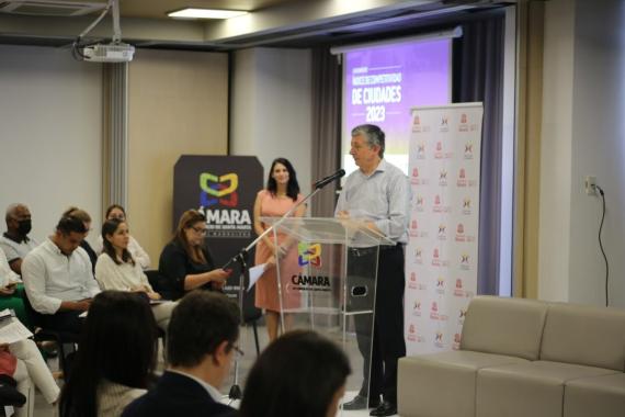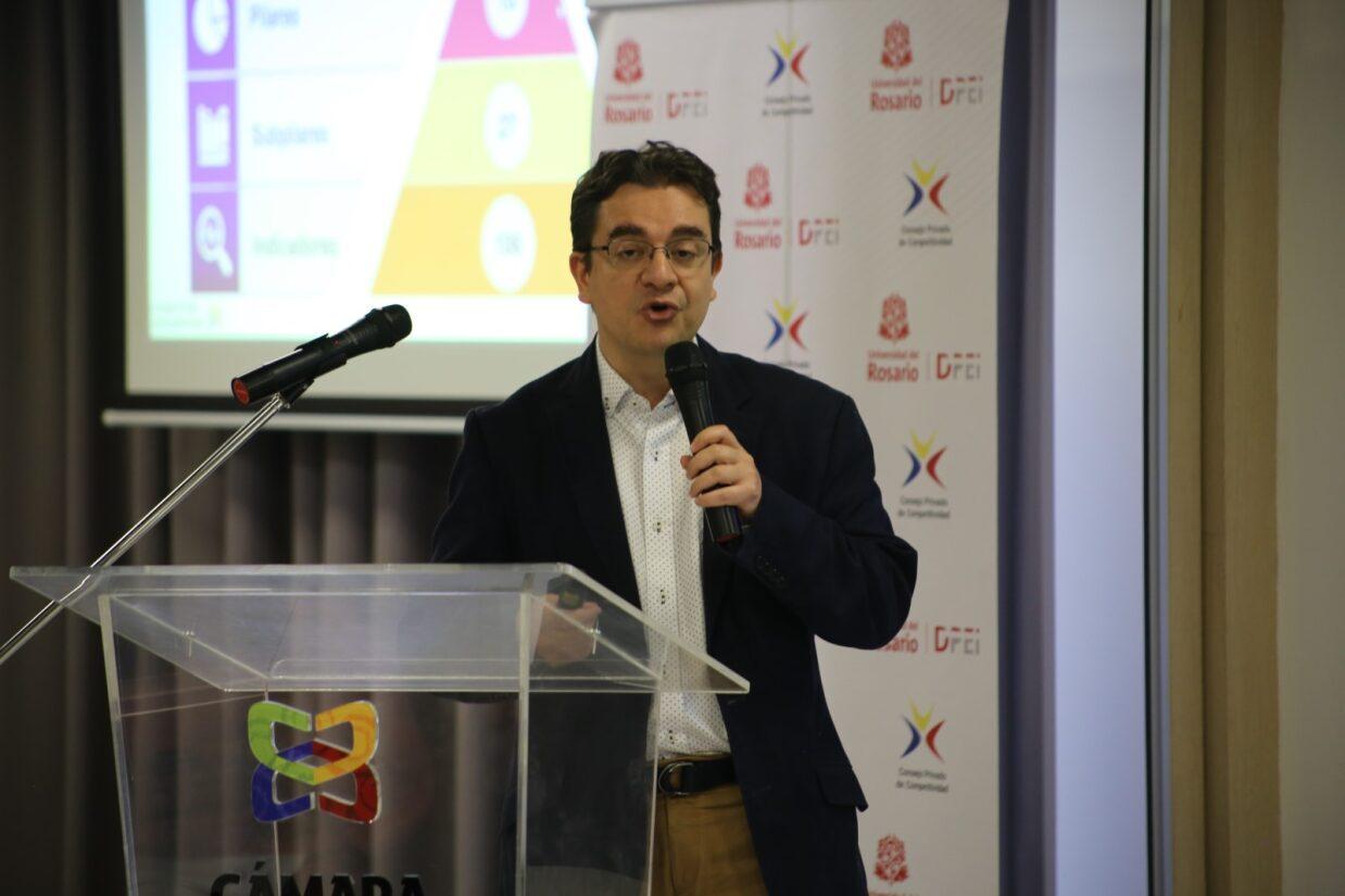 Tras los saludos protocolarios, el foro inició con la introducción a cargo de Daniel Gómez, Vicepresidente del Consejo Privado de Competitividad, quien fue el encargado de explicar la metodología del índice de competitividad de ciudades. En este punto, se señaló que el índice evalúa 7 áreas metropolitanas y 25 ciudades principales del país. Estos datos no solo son necesarios para achicar las brechas de calidad de vida a nivel nacional, sino cerrar estas mismas brechas con el resto del mundo. Adicionalmente, se busca que el índice sea una herramienta de construcción de agendas a nivel local y de diálogo. Por otro lado, durante el foro, se proyectó un video sobre los resultados del índice de competitividad de ciudades del año 2023. Los resultados reflejaron que las metrópolis, como, por ejemplo, Bogotá, Medellín, Tunja y Cali, se encuentran en los primeros lugares en la medición de los 13 indicadores, dentro de los cuales se encuentran: educación superior, mercado laboral, instituciones, salud, entre otros. Dicha medición, también expuso que ciudades como Mitú, Leticia y San José del Guaviare, tuvieron una tendencia de bajo desempeño, lo que los llevo a ocupar los últimos puestos.