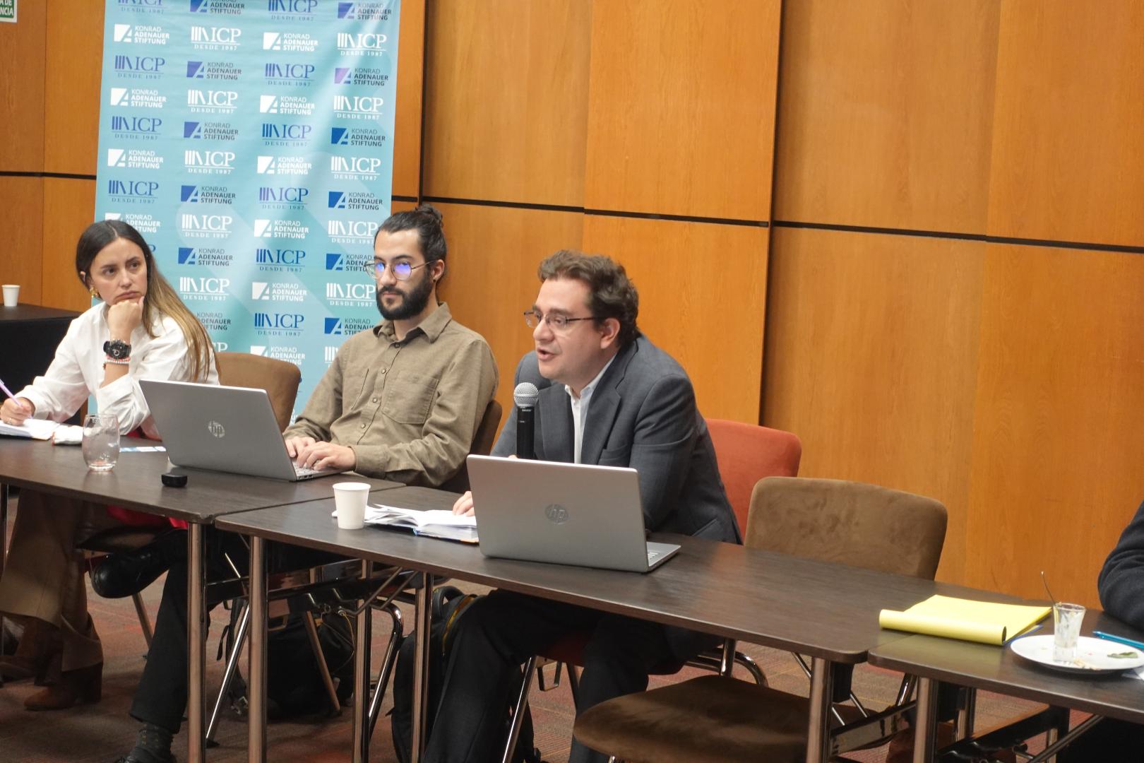 El evento inició con la presentación y bienvenida por parte de Carlos Augusto Chacón, director del ICP, quien agradeció la asistencia de los participantes y mencionó la importancia de generar estos espacios de discusión debido a la coyuntura nacional y con el propósito de producir recomendaciones y observaciones que aporten al debate con argumentos y sustento en datos en un tema tan fundamental como es la economía para la vejez. Seguido a esto, Andrea Valdelamar, Coordinadora de proyectos de la KAS, expulsó el trabajo que la fundación desempeña para el fortalecimiento de la democracia a través de cinco ejes temáticos: el desarrollo sostenible, la construcción de paz, la seguridad y la defensa, la descentralización y el fortalecimiento de las instituciones democráticas. Asimismo, hizo énfasis en la imperante necesidad de generar consensos sobre una reforma pensional, que es necesaria, que sea sostenible económica y socialmente en el tiempo dadas las proyecciones estadísticas del país.