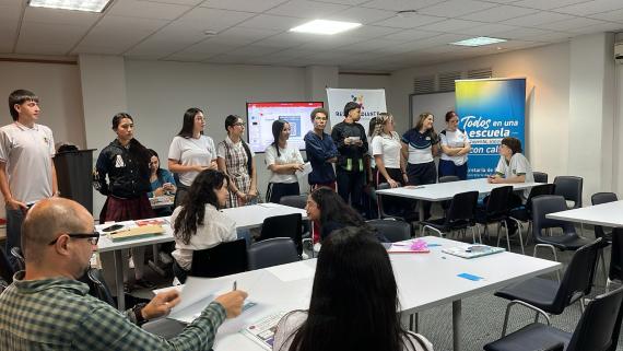 El primer módulo, Planifica, se centró en la importancia de construir un plan de trabajo para transformar las ideas en acciones concretas y sostenibles. En este ejercicio, los grupos seleccionaron temas como deporte, tecnología, medio ambiente, cultura ciudadana, educación, salud mental y diversidad, identificando problemáticas asociadas a cada uno. Luego, elaboraron la matriz de planificación, herramienta propuesta en la cartilla. Este ejercicio permitió que los jóvenes compartieran las iniciativas que se estaban liderando en sus instituciones con maestros de otras instituciones para enfrentar estos problemas.