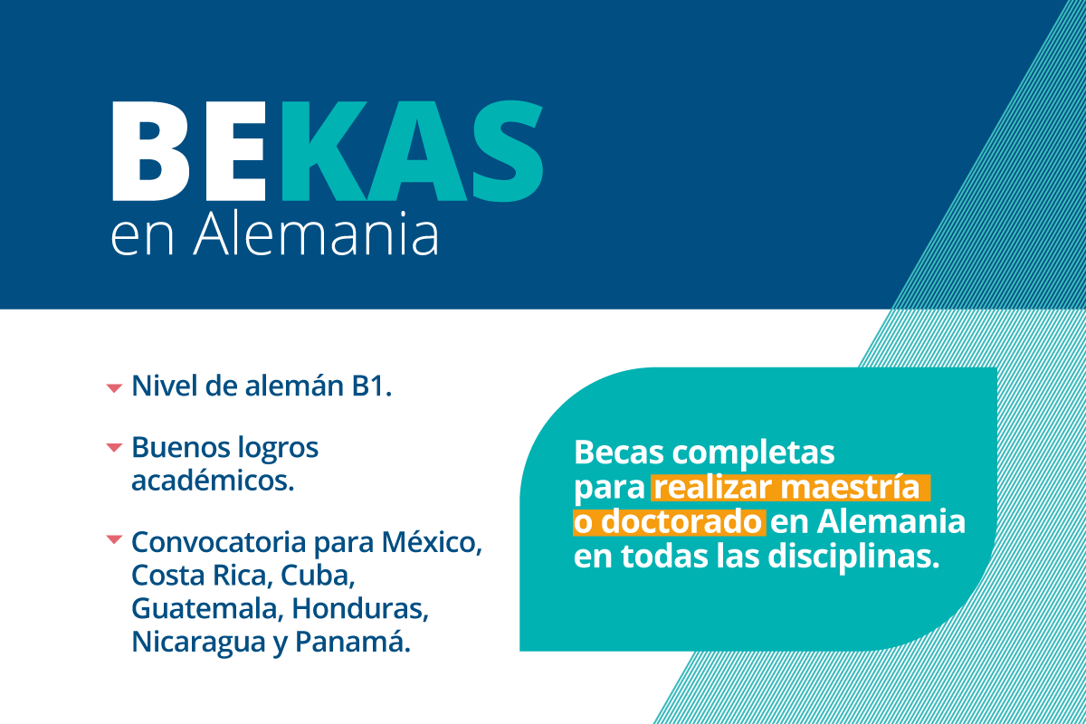 La Fundación Konrad Adenauer ofrece becas completas para financiar estudios de máster (de al menos cuatro semestres de duración), o proyectos de doctorado, así cómo estadías de investigación (de al menos tres semestres de duración) en una universidad alemana.