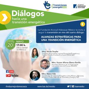En el cuarto diálogo virtual participaron Laura Philipps, Representante Adjunta de la KAS México, Eduardo Walsh, Gerente de Proyectos de la KAS México, Nicole Stopfer, Directora del programa regional Seguridad Energética y Cambio Climático en América Larina (EKLA-KAS), Alfonso Blanco, Secretario Ejecutivo de la Organización Latinoamericana de Energía (OLADE) y Marco Hüls, Coordinador de la alianza estratégica entre México y Alemania, Ministerio Federal Alemán de Economía y Energía y GIZ.