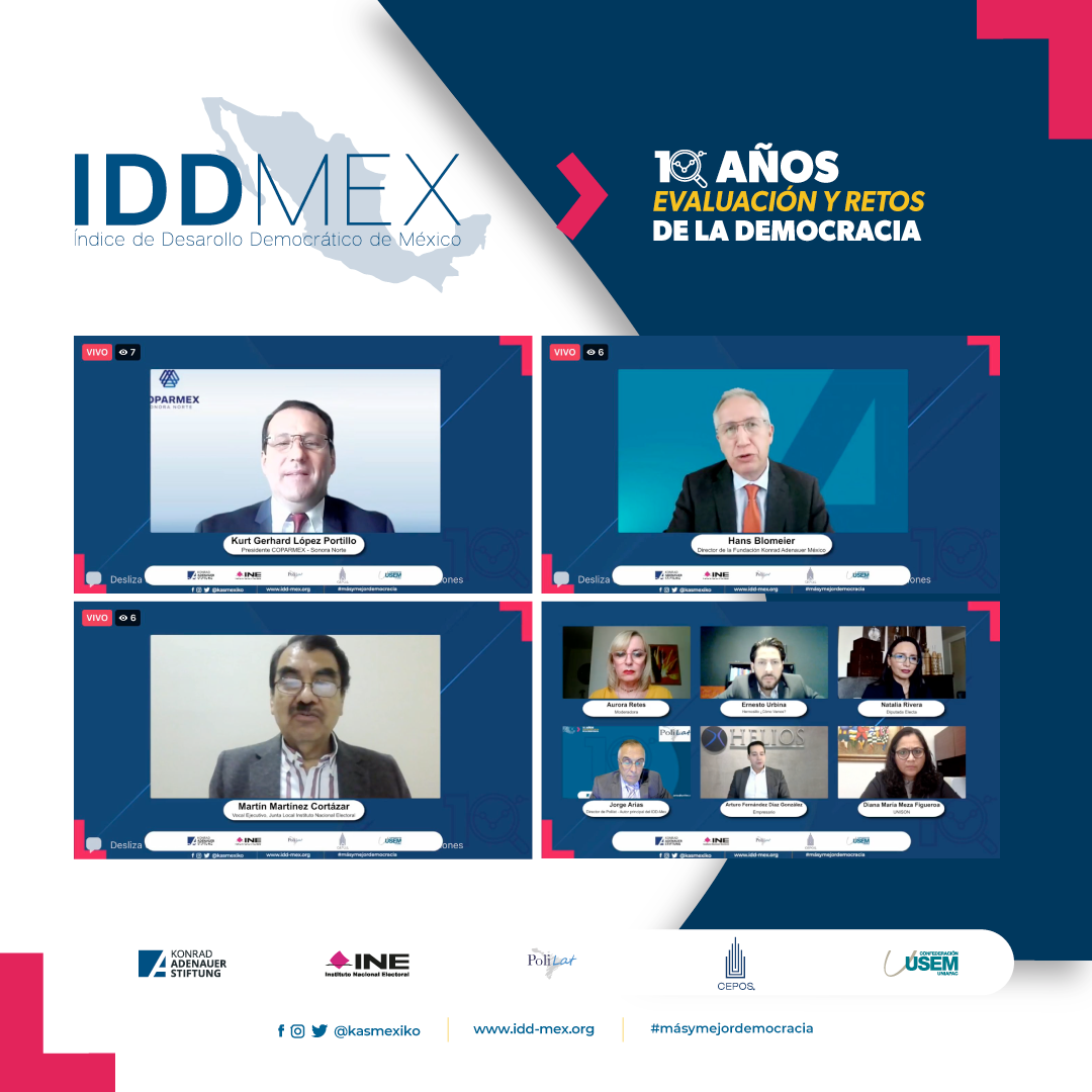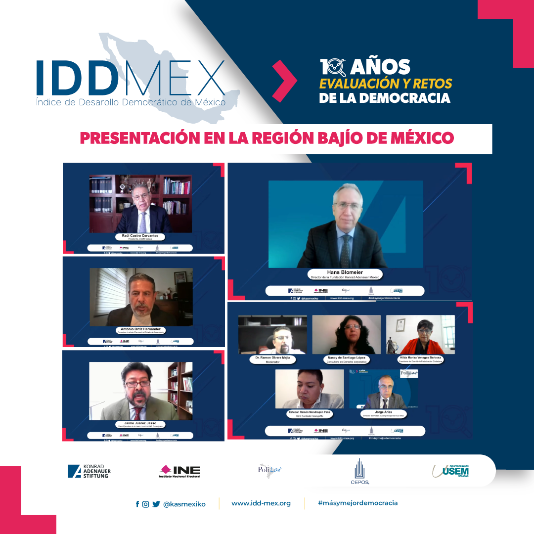 Con el objetivo de crear un espacio de análisis y reflexión de los resultados a nivel regional del IDD-Mex 10 años, se organizaron giras de presentación en las diversas regiones de México. Durante la inauguración, Hans Blomeier, representante de la KAS en México, señaló que para desarrollar mejores políticas públicas en favor de las entidades federativas del país, es necesario comprender aciertos y desaciertos, aspectos que muestra el IDD-Mex. “A la fecha no existe otro estudio que analice y evalúe el desarrollo democratico por entidad federativa”, indicó.