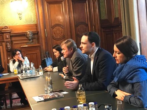 Nuestra visita al Ayuntamiento-Parlamento (ambos órganos se encuentran en el mismo lugar), concluyó con una pequeña visita guiada por este bello edificio y una introducción a la ciudad. Sin dudas, ¡una gran experiencia!