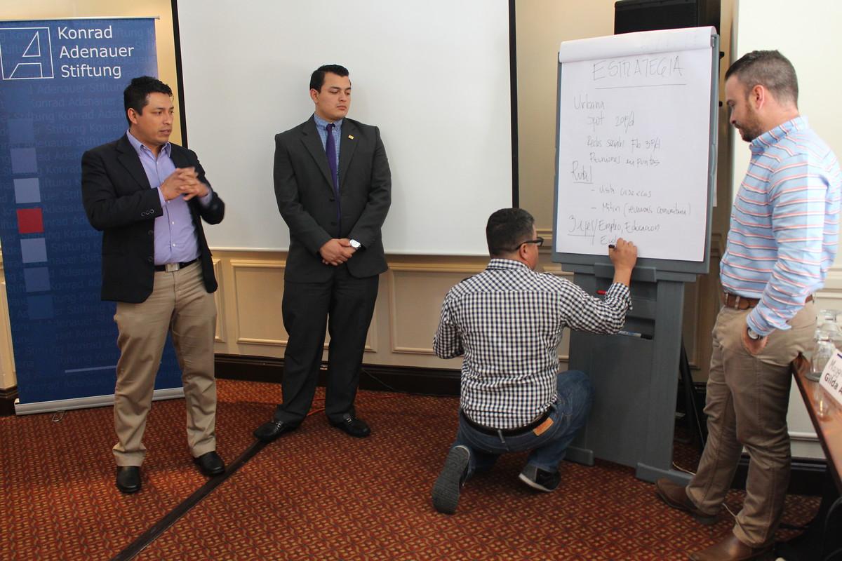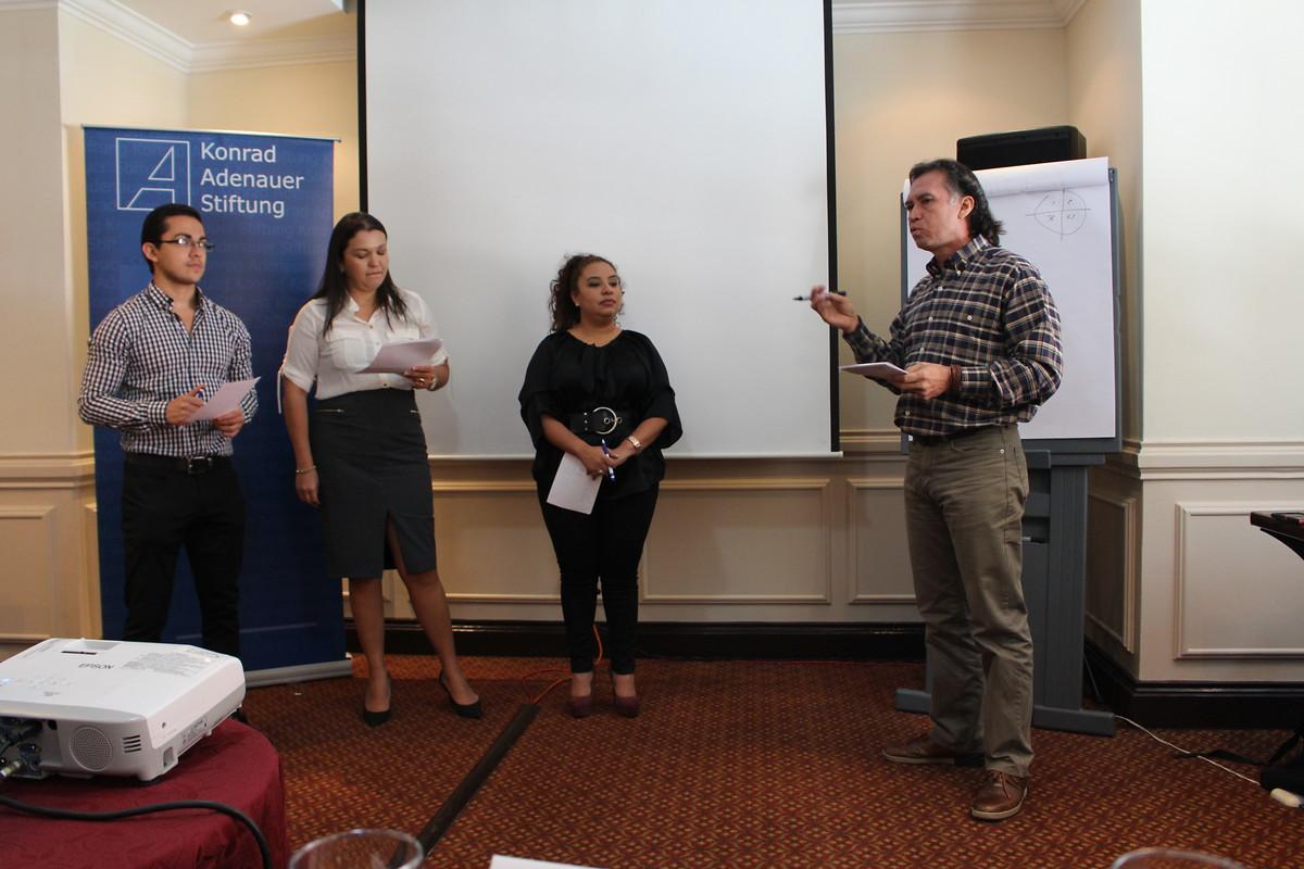 En la tarde continuaron los consultores Augusto y Máximo Reina con varios ejercicios prácticos enseñando la construcción de un mensaje preciso y fuerte. Además los participantes tuvieron que desarrollar actividades con gran poder de comunicación para captar la atención tanto de los medios de comunicación, como también de los votantes.