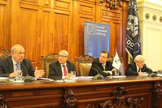 Antes de la elección, la presidenta de Chile, Michelle Bachelet, el expresidente, Eduardo Frei Ruiz-Tagle, y la presidenta del Partido Demócrata Cristiano de Chile, senadora Carolina Goic, se dirigieron a los invitados. La presidenta Bachelet destacó en su discurso los éxitos del gobierno a su cargo pero advirtió que son tiempos difíciles para Chile y todo el continente latinoamericano. Entre los desafíos Bachelet destacó la búsqueda de un camino adecuado y cooperativo entre los actores políticos. Hubo palabras elogiosas para la Fundación Konrad Adenauer y la ODCA por su promoción de la cooperación y el diálogo entre los diversos partidos políticos. La senadora Goic señaló en su discurso que los retos actuales para los partidos cristianos han significado golpes pero también aprendizajes de los que emergen más fuertes. A continuación, Markus Rosenberger, director de la Fundación Konrad Adenauer en América Latina, se comprometió a brindar apoyo a los socios políticos en América Latina y aseguró una cooperación estrecha en el futuro necesaria para dar respuesta a los acontecimientos en ambos continentes.
