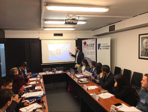 Ángel Arellano, coordinador de proyectos de la KAS; nos dio una visión bastante amplia del trabajo que se realiza desde la fundación para promover la democracia en la región, también nos presentó la revista diálogo político y una serie de ejemplares recientes, que buscan estudiar y entender la política de manera amplia, confirmándonos que las soluciones para el desarrollo de nuestras naciones y por ende de la región, pasan por pensar en los problemas y dar respuestas concretas y estudiadas como soluciones. No es tiempo de improvisar, es tiempo de prepararnos, formarnos y cooperar entre nosotros. Entendimos además, la importancia de hacer seguimiento al trabajo de la fundación e involucrarnos con la misma, aumentando así el alcance de nuestras ideas y permitiéndonos dar a conocer las distintas realidades que vivimos y estar más cercanos a quienes habitan en otras regiones. Ese es el caso de Sebastián Chiappe, quien fue el ganador del concurso de relatos cortos de Diálogo político y hoy día continúa su trabajo con la fundación. Sebastián nos contó su experiencia en el concurso, nos acompañó durante todo el día y fue un gran anfitrión, convenciéndonos del poder que tenemos con la fuerza de las palabras y que siempre estas deben ser usadas.