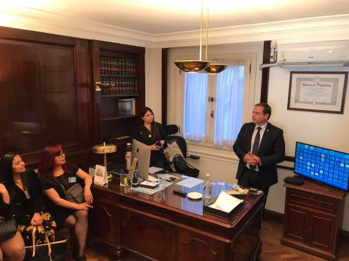 Nuestro día continuó con una visita institucional al Congreso y Senado Argentino, allí fuimos recibidos por el Senador Guillermo Snopek, su mensaje fue muy optimista y democrático, resaltando la importancia del diálogo y el consenso como herramientas para el mantenimiento de la democracia y el desarrollo de su nación. Para mí en lo personal, fue un poco impactante escuchar a un Senador que forma parte de la coalición de partidos que resultó victoriosa en las elecciones presidenciales, hablar de consenso, negociación, diálogo y respeto por las “minorías”, ya que esto confirma la profunda convicción democrática del legislador y de la nación como tal (situaciones que no son muy comunes en mi país). Posteriormente procedimos a conocer el hemiciclo de sesiones de cada una de las cámaras y así sentimos de cerca el espíritu legislador y democrático de la historia Argentina.