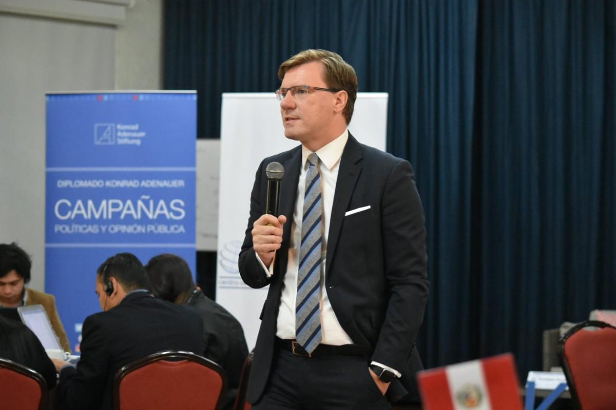 La segunda jornada del diplomado inició con el recibimiento a Nico Lange, subdirector general de la CDU y jefe del departamento de planificación política; y Christian Forneck, asesor de política exterior del grupo parlamentario CDU/CSU, quienes acompañaron a los participantes compartiendo su experiencia en Alemania como dirigentes partidistas y miembros del equipo de estrategas que asesora esta organización. Su visita a la capital peruana es parte del esfuerzo de la KAS para construir lazos en la región Latinoamericana.
