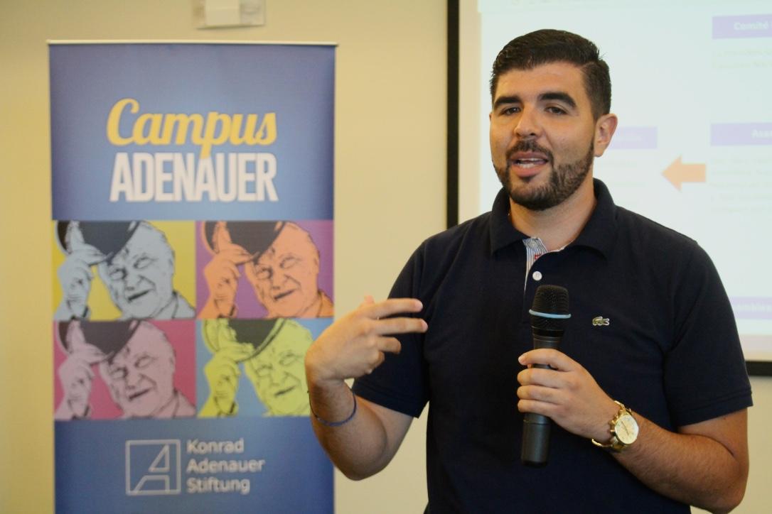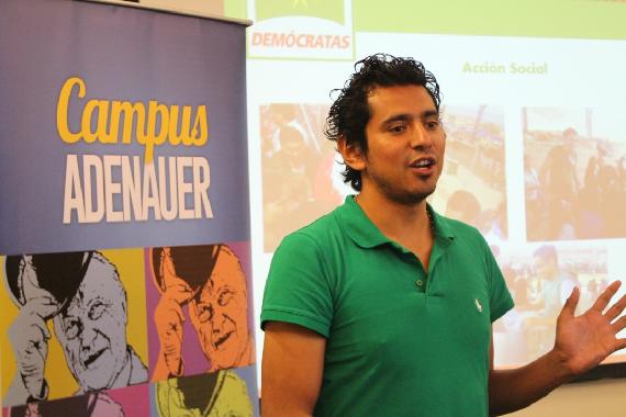 Luego es turno de la representación de Bolivia, Tito Ibañez, quien se muestra entusiasta y con una gran vocación de servicio, comenta sobre como el deseo de fortalecer la democracia puede movilizar a la juventud y de cómo esta se enfrenta al populismo en un mano a mano en donde les toca ser oposición y en donde la ciudadanía ha confiado espacios de poder a los jóvenes del partido Demócratas. “Formar jóvenes para formar ciudadanía” expresó.