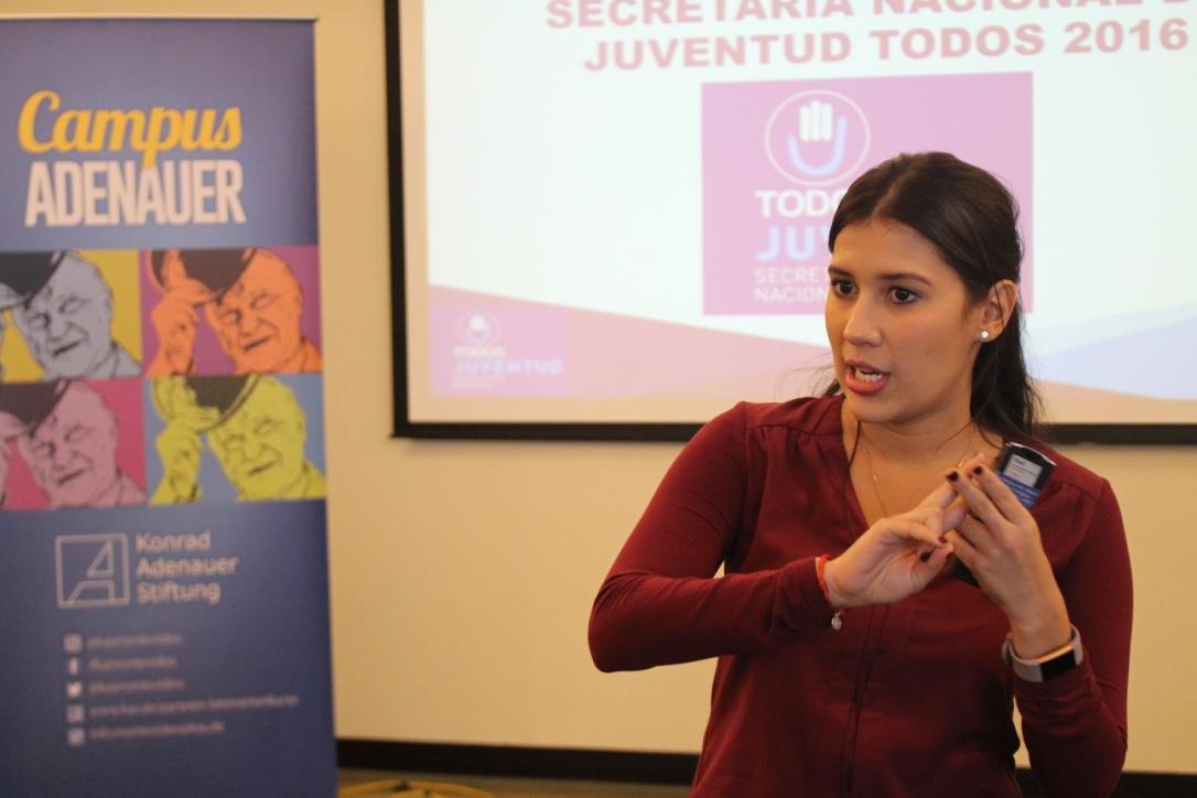 Siguiendo por el río de la Plata hasta Uruguay es el turno Verónica González ella comparte su experiencia como militante y dirigente juvenil del partido con más años de historia: El Partido Nacional. “Nosotros dijimos, ok, somos jóvenes y vamos a seguir siendo pegabanderas, vamos a seguir repartiendo volantes, pero queremos algo más: queremos formarnos! Y en esta tarea contar con el apoyo de una fundación como la Konrad ha sido fundamental”