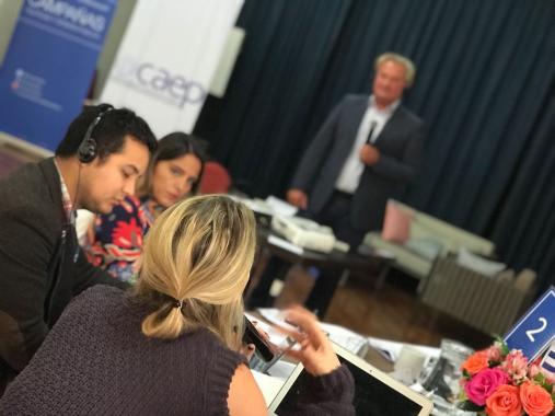„Strategie“ ist das Wort, das sich wie ein roter Faden durch diesen Vormittag zieht. Nico Lange, stellvertretender Bundesgeschäftsführer der CDU, diskutiert mit mehr als 30 jungen Politikern aus ganz Lateinamerika, wie man als Politiker und Partei langfristig erfolgreich Wahlen bestreitet.
