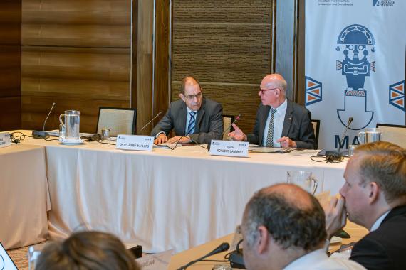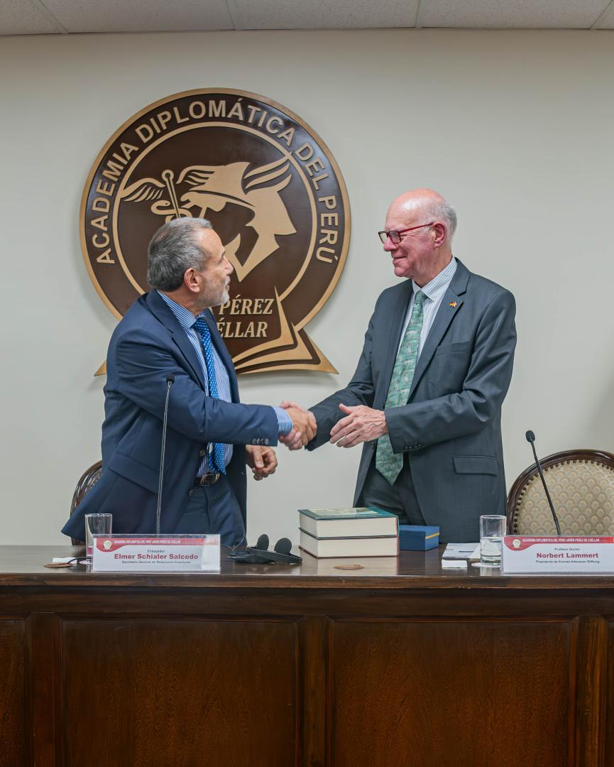 Asimismo, en esta especial edición de la MAK, tuvimos el placer de contar con la presencia del presidente de la KAS, el Profesor Doctor Norbert Lammert, el subsecretario general y jefe de cooperación europea e internacional, Doctor Gerhard Wahlers, quienes estuvieron acompañados por los diputados alemanes Thomas Rachel y Peter Beyer del partido CDU, así como del señor Henning Speck, asesor de la bancada parlamentaria del partido CDU. Ellos tuvieron un nutrido programa de reuniones de alto nivel, así como visitas culturales que les permitieron tener un entendimiento integral de la situación política en el Perú, los desafíos de la democracia, así como la riqueza histórica y cultural del Perú. Asimismo, el Profesor Doctor Norbert Lammert, recibió la Medalla Valores Democráticos Fernando Belaunde Terry por parte de la Universidad San Ignacio de Loyola.