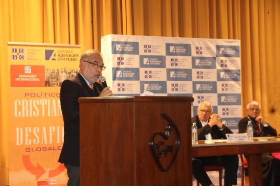 Como expositor principal Osvaldo Hurtado, político socialcristiano y expresidente de la República del Ecuador, destacó el rol de los partidos políticos en el fortalecimiento de las sociedades latinoamericanas. Para él, la democracia es una búsqueda de las mejores soluciones posibles, aun cuando estas —como ocurre con reformas económicas— sean impopulares. Asimismo, denunció la desastrosa situación económica y social de diversos gobiernos de izquierda en la región, representantes del “Socialismo del Siglo XXI”. Un hecho paradójico, considerando que este tipo de gobiernos siempre responsabilizó al sistema democrático de partidos por los problemas de las sociedades latinoamericanas. En el centro de esta discusión estuvo la dramática situación en Venezuela, la cual fue también analizada por el presidente de la Conferencia Episcopal Venezolana, Cardenal Baltazar Porras, quien destacó la labor humanitaria de la Iglesia en su país bajo el régimen de Maduro.