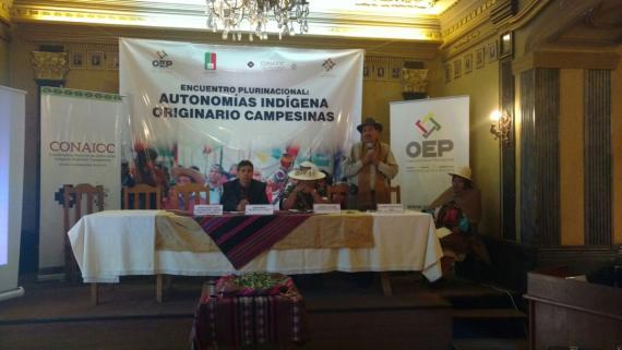 El Encuentro fue Organizado por el Organismo Electoral Plurinacional, la Coordinadora Nacional de Autonomías Indígena Originario Campesinas y el Ministerio de Autonomías.