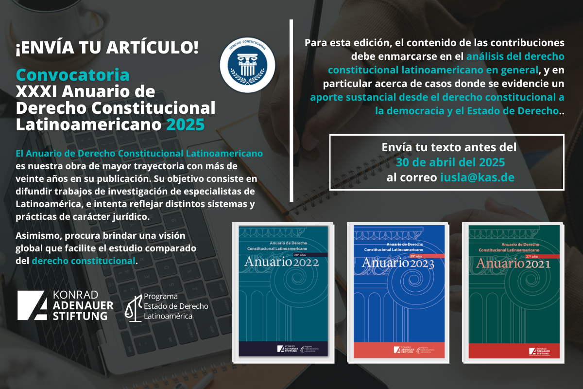 Bienvenidos a la página web del Programa Estado de Derecho para Latinoamérica de la Fundación Konrad Adenauer. La finalidad del Programa es brindar apoyo sostenido al desarrollo y a la profundización de un orden jurídico justo y eficiente, basado en el principio de Estado de Derecho como pilar fundamental de una democracia sólida.