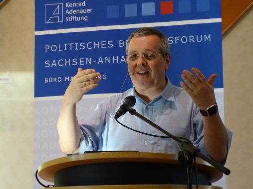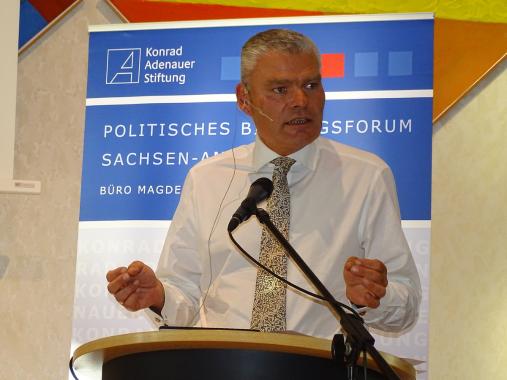 „Politisch-Musikalischer Salon“ der Konrad-Adenauer-Stiftung in Magdeburg, mit Holger Stahlknecht MdL (Minister für Inneres und Sport des Landes Sachsen-Anhalt) und Dr. Stephan Eisel (Konrad-Adenauer-Stiftung); Moderation: Maik Scholkowsky (Hörfunk-Journalist)