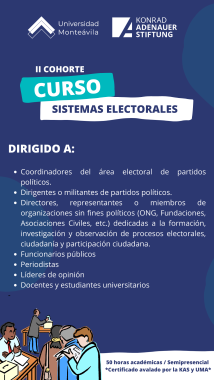 Programa Curso Sistemas Electorales II Cohorte (1) descargarSiendo parte de este curso podrás comprender los derechos políticos y electorales establecidos en la normativa constitucional de Venezuela. Comprenderás el Derecho Electoral venezolano y su vinculación con otras ramas del derecho y las ciencias sociales. Analizarás el marco normativo y naturaleza jurídica de los partidos políticos, y su importancia en el sistema democrático. Y podrás contribuir a la formación de hábitos de colaboración entre los distintos actores sociales y políticos para el fortalecimiento de las instituciones democráticas y el sistema electoral venezolano.