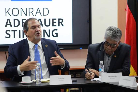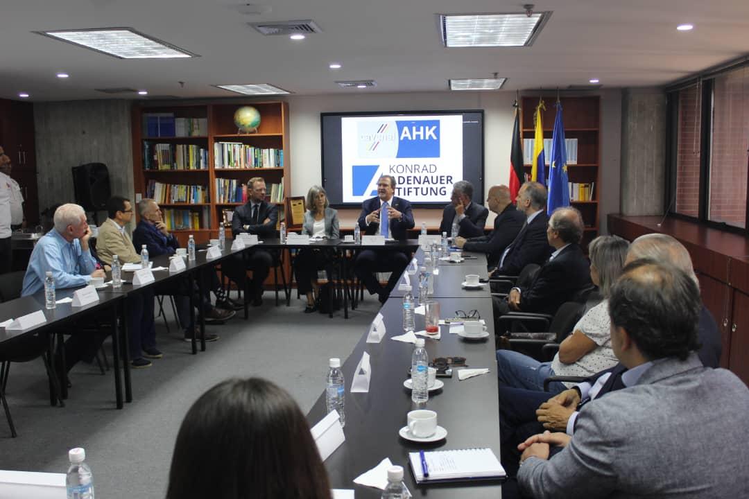 Adán Celis presidente de Fedecámaras conversó junto a invitados de CAVENAL AHK y KAS el día 16 de julio de 2024 en la sede de CAVENAL AHK. Este expresó la necesidad de acuerdos entre empresarios y políticos para el crecimiento económico del país. También, resaltó la importancia de tener gremios sólidos dispuestos a conversar con quienes gobiernan y establecen las regulaciones económicas del país, pues el desarrollo nacional solo es posible en el entendimiento mediante la comunicación fluida y asertiva de las partes.