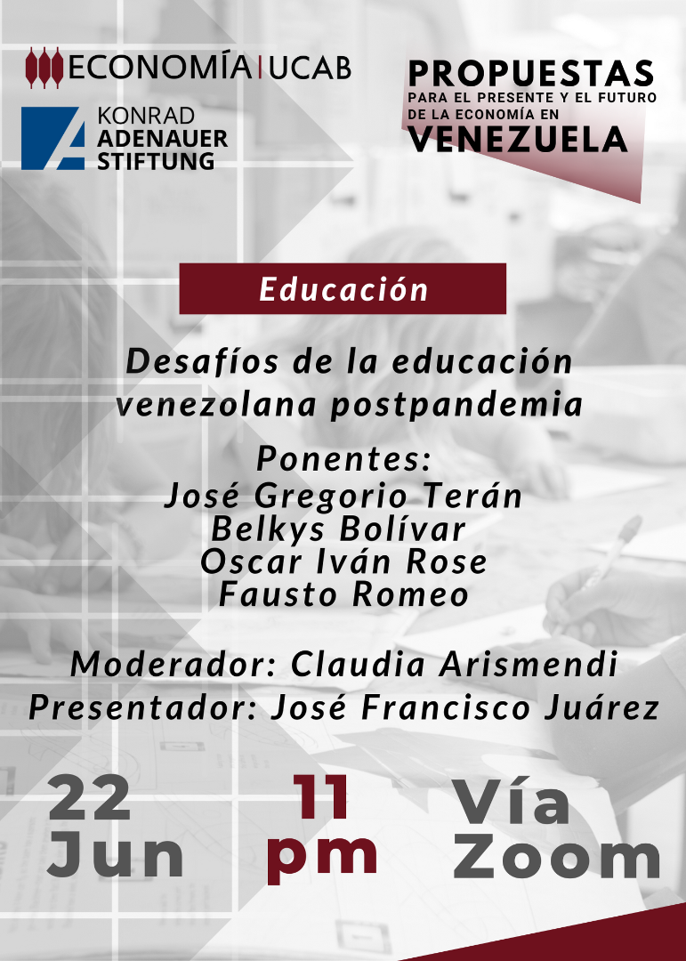 El día 22 de junio de 2022 la Facultad de Ciencias Económicas y Sociales de la Universidad Católica Andrés Bello, a través de la Escuela de Economía celebró el foro Desafíos de la educación venezolana postpandemia” como parte del ciclo de discusiones del Proyecto “Propuestas para el presente y futuro de la economía en Venezuela”.