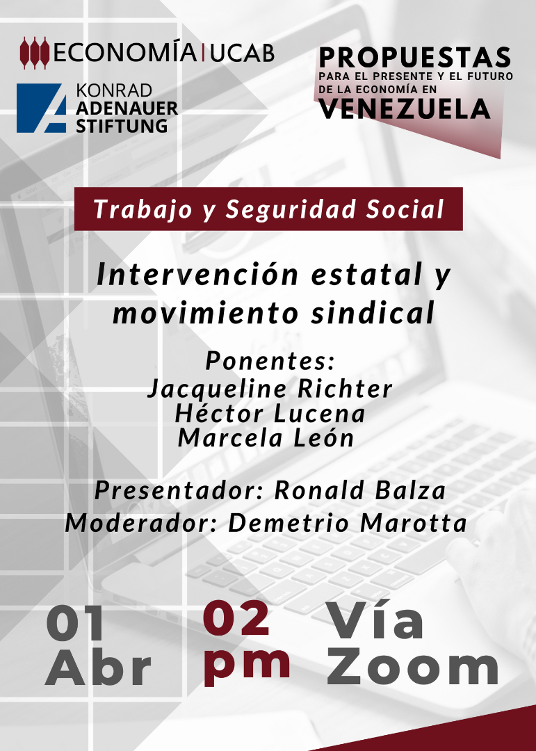 El día 01 de abril de 2022 la Facultad de Ciencias Económicas y Sociales de la Universidad Católica Andrés Bello, a través de la Escuela de Economía celebró el foro “Intervención estatal y movimiento sindical” como parte del ciclo de discusiones del Proyecto “Propuestas para el presente y futuro de la economía en Venezuela”.