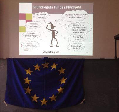 Die Schülerinnen und Schüler beschäftigten sich mit diesem ehrgeizigen Vorhaben in den Rollen von Mitgliedern des Europäischen Parlaments, des Rates der Europäischen Union sowie der Europäischen Kommission. Außerdem versetzten sich drei Schülerinnen in die Rolle der Presse. Sie führten seriöse Interviews, verfassten aber auch den ein oder anderen Klatsch-Artikel. Während der Verhandlungen und Beratungen zum Gesetzesentwurf wurde schnell klar, dass eine gemeinsame Lösung gar nicht so leicht zu finden war, schließlich waren die Interessen alles andere als einheitlich. Zahlreiche Reden wurden gehalten und in den Pausen ging es mit informellen Gesprächen weiter. Was am Ende allen bewusst war: Der Weg zum Gesetz, mit dem eine Mehrheit der Vertreter zufrieden ist, ist gar nicht so leicht und bedarf einiges an Diskussionen und viel Überzeugungsarbeit.