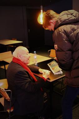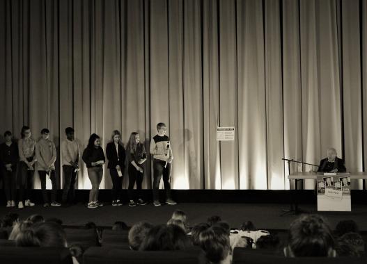 Rund 170 Schülerinnen und Schüler waren am gestrigen Tag gemeinsam mit ihren Lehrenden dabei, als Sally Perel über seine Erfahrungen aus der Zeit des Nationalsozialismus sprach. In einer offenen Fragrunde im Anschluss an die Lesung hatte das junge Publikum die Möglichkeit, viele spannende Fragen zu stellen.