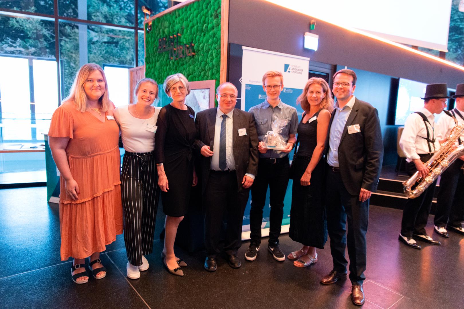 Im Anschluss betraten Schülerinnen und Schüler des Besselgymnasiums Minden die Bühne, um über ihre Erfahrungen eines Workshops der Konrad-Adenauer-Stiftung zu berichten. Bei dem sogenannten Adenauer-Lab hatten sie gemeinsam mit Referentin Dr. Julia Reuschenbach die Grundlagen der föderalen Organisation erarbeitet und erkannt, wie wichtig das persönliche Engagement in einer Demokratie ist. Die jungen Erwachsenen waren der Meinung, dass man die Demokratie wieder näher zu den Bürgerinnen und Bürgern bringen muss, um auch Personengruppen anzusprechen, die sich nicht für die Politik interessieren. Zuletzt äußerten die Schüler/innen noch den Wunsch, dass die politische Stimme der Jugend mehr Beachtung von der Politik erfährt.