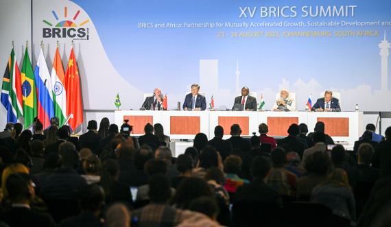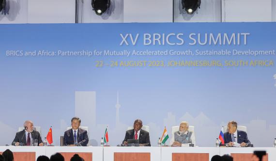 War es in den vergangenen Jahren relativ ruhig um das 2009 gegründete Bündnis aus Brasilien, Russland, Indien, China und Südafrika geworden, trat es mit seinem XV. Gipfeltreffen Ende August in Johannesburg wieder ins weltpolitische Rampenlicht. Und das in erster Linie aus zwei Gründen: erstens, wegen der Erweiterung des Bündnisses um sechs Länder und zweitens, wegen der Diskussionen über die Schwächung bzw. gar Ablösung des US-Dollars als weltweite Leitwährung. Mit der Aufnahme des Iran, der Vereinigten Arabischen Emirate, Saudi-Arabiens, Argentiniens, Ägyptens und Äthiopiens per Januar 2024 repräsentiert die BRICS-Gruppe nun rund 36% des weltweiten Bruttonationaleinkommens (mehr als die G7, die bei rund 31% liegt) und 46 % der Weltbevölkerung (G7: rund 10%). Mehr als 40 % der weltweiten Öl- und mehr als 36 % der weltweiten Gas-Produktion sind nunmehr BRICS-Staaten zuzuordnen.