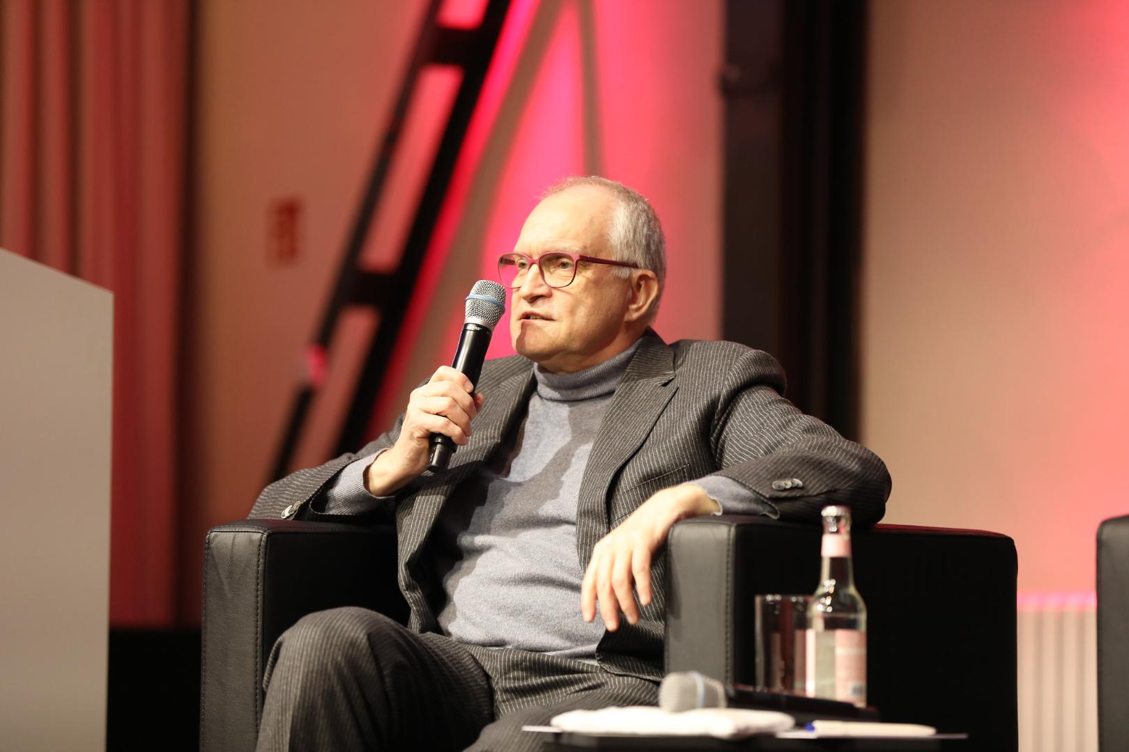 Anschließend hielt der Präsident des Leibniz-Instituts für Wirtschaftsforschung Prof. Dr. Dr. h.c. Christoph Schmidt einen Impulsvortrag unter dem Titel „Erneuerbare Energien = Sichere Energien?“, wobei er exklusive Einblicke in noch unveröffentlichte Ergebnisse der neuesten Energiesystemstudie (ESYS-Studie) gewährte. Zu Beginn definierte er zwei übergreifende Aufgaben, denen wir uns gegenübersähen: Auf globaler Ebene gehe es um die Defossilisierung ohne Entwicklungsblockaden, auf nationaler Ebene um die Defossilisierung ohne Deindustrialisierung. Ohne politische Eingriffe und Rahmensetzung sei es nicht möglich, die dafür nötige Energiewende zu schaffen. Es müsse ein bewusster Umstieg auf Energieträger erfolgen, der in eine klimaneutrale Zukunft führen. Als erfolgreiches Beispiel führte Schmidt eine CO2-Bepreisung an, was zu einer marktgelenkten Energiewende führe, denn, so Schmidt, der Staat könne nicht alles dirigieren. Es müsse ebenso Offenheit für Experimente, für Forschung und Entwicklung geben, womit er einen Ton traf, der im weiteren Verlauf des Tages immer wieder anklingen sollte. Im weiteren Vortrag ging Schmidt auf einige Erkenntnisse der neuesten ESYS-Studie ein, die am 2. Februar 2023 veröffentlicht werden wird. Er warnte davor, die Szenarien, die in der Studie dargelegt werden, mit Prognosen oder gar Roadmaps zu verwechseln. Er verdeutlichte, dass die energiepolitischen Ziele der Bundesregierung für das Jahr 2030 ambitionierter seien, als die meisten Studien es für realistisch hielten. Ein Energieträger sei in Zukunft von besonderer Bedeutung: Wasserstoff. Dabei solle man sich nicht der Illusion hingeben, dass Deutschland seinen Wasserstoffbedarf alleine decken könne. Rund 80 Prozent des künftig benötigten Wasserstoffs müsse sehr wahrscheinlich importiert werden. Dabei mahnte Schmidt an, dass ein gemeinsames europäisches Vorgehen nötig sei – sowohl beim Aufbau einer Wasserstoffinfrastruktur als auch beim Abschluss von Energiepartnerschaften.