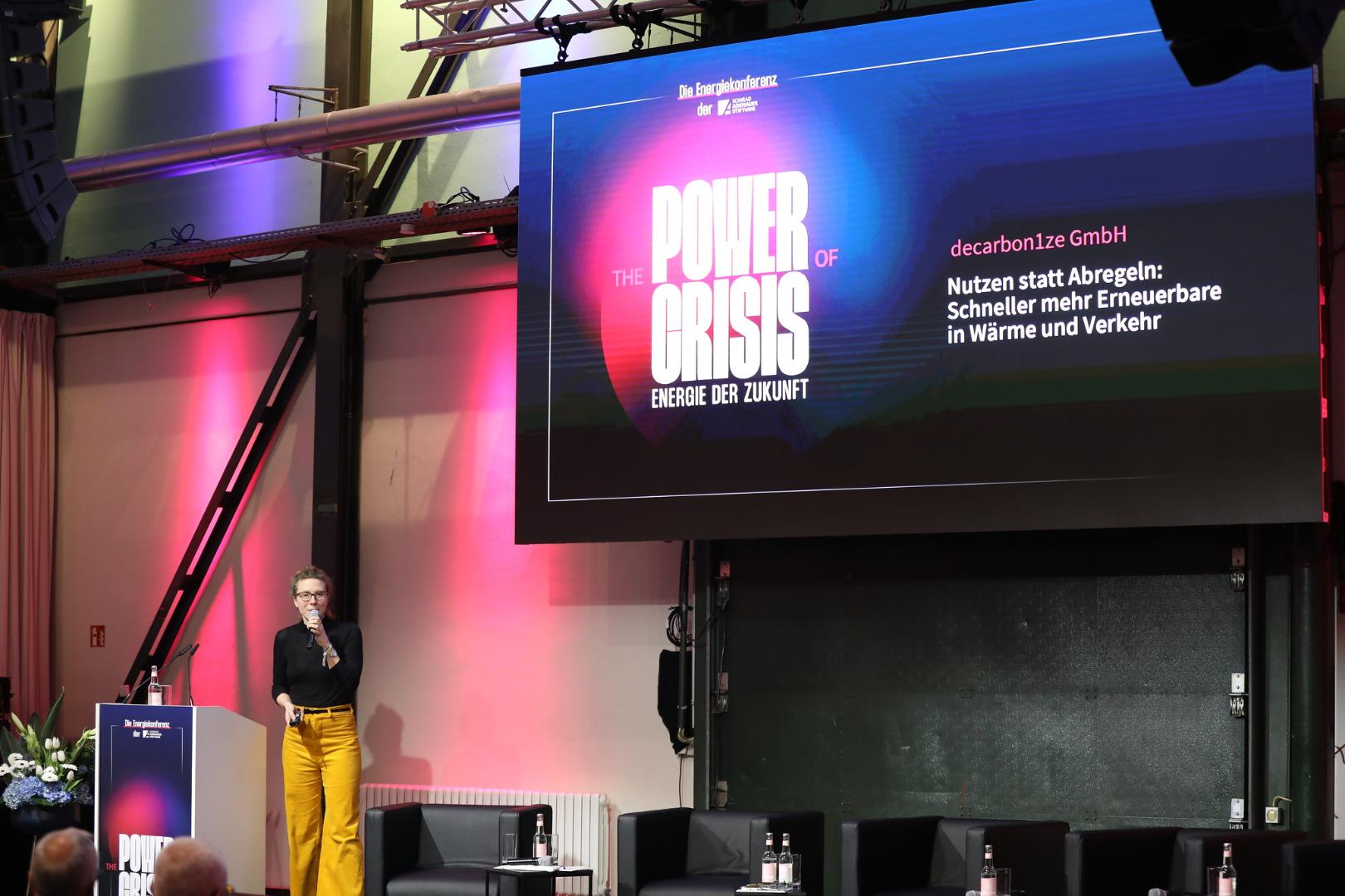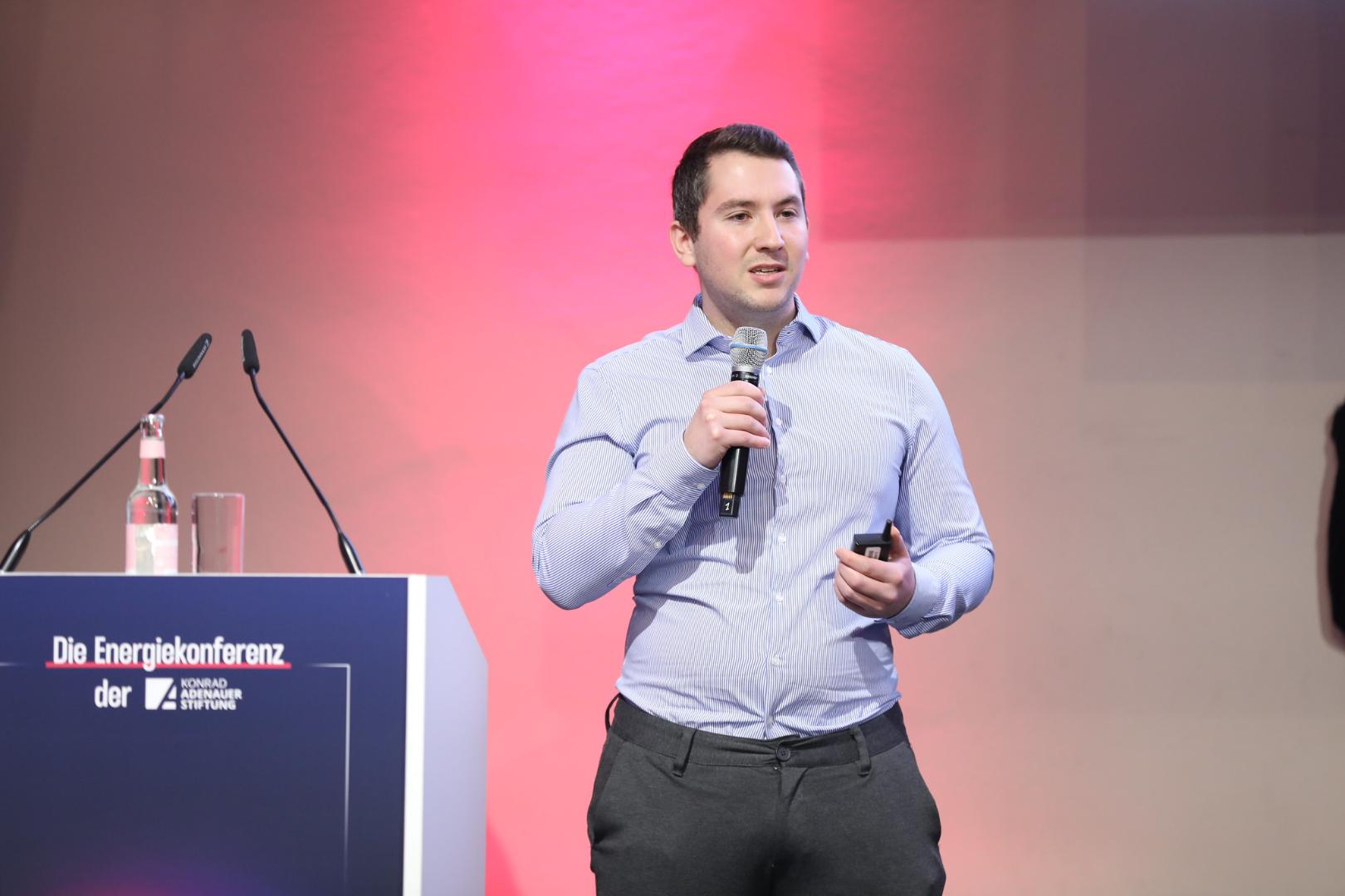 Mit Blick auf innovative Lösungen für die Energieversorgung der Zukunft bekamen die Gäste der Konferenz nach der Mittagspause kurze Schlaglichter auf einige junge Unternehmen und deren Ideen geboten. In Form von fünfminütigen Pitches präsentierten sich insgesamt vier StartUps. Decarbon1ze etwa entwickelt intelligente Lösungen für den Stromzähler, damit der Energieverbrauch von individuellen Geräten gemessen und abgerechnet werden kann, was die gezielte Steuerung von Stromflüssen durch tarifliche Anreize für kleine elektrische Anlagen ermöglicht. Hydro2x arbeitet an einer KI-gesteuerten Prognose von Überproduktionen erneuerbarer Energie, die dann effizient in grünen Wasserstoff umgewandelt werden können und nicht abgeregelt werden müssen. Das StartUp UCANEO arbeitet an einer Technologie zur Abscheidung und Speicherung von CO2 auf kleiner Fläche. Und Shit2Power will Klärschlamm nutzen, um Energie zu erzeugen und damit gleichzeitig das Transport- und Lagerproblem von Klärschlamm lösen.
