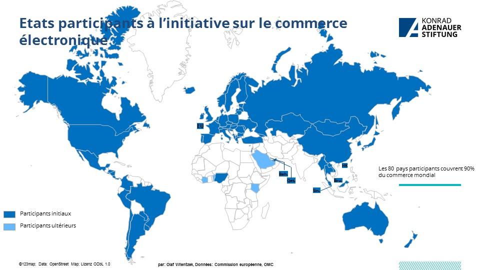 Tout de même l’initiative sur le commerce élec-tronique progresse. Entre temps, 80 pays se sont joints à cette initiative représentant 90% du commerce mondial (carte II). Les négociations difficiles sur le subventionnement de la pêche avancent également. Il n’est pas sûr qu’elles puis-sent se terminer cette année encore.