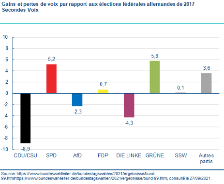 Cette élection se caractérise par la faible performance de la CDU/CSU, avec une montée des Verts, du SPD et du FDP, tandis que les extrêmes politiques ont perdu des voix (l’AfD est affaiblie et la Gauche en difficulté).