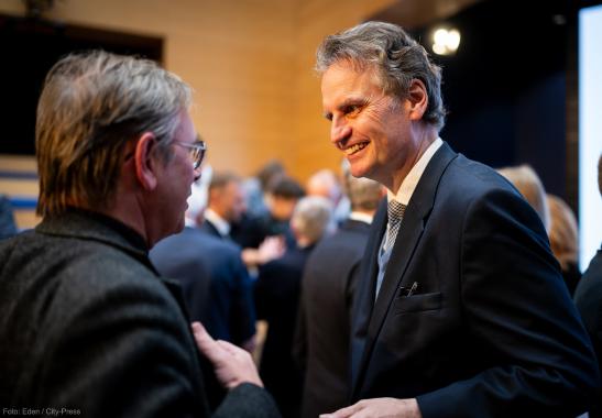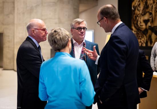„Es wäre eine spektakuläre Untertreibung, zu behaupten, Norbert Lammert habe die KAS geprägt“, begrüßte Generalsekretär Dr. Mark Speich die Gäste. Denn Lammert habe „den christdemokratischen Geist wachgehalten“ und die Öffnung der KAS über „den Kreis der politisch üblichen Verdächtigen hinaus, insbesondere in Richtung Kunst und Kultur“ vorangetrieben. Konkret hob Speich den steten Fokus auf die ordnende Kraft des Rechts, den Einsatz für die Ukraine und die Freiheit, die deutsch-israelischen Beziehungen, die Vertiefung der Partnerschaften mit gleichgesinnten Demokratien und die Modernisierung der Kommunikation sowie Strukturreformen in der KAS hervor. „Heute“, so der Generalsekretär abschließend, „strahlt und glänzt die Stiftung – und das ist Ihr wesentliches Verdienst.“