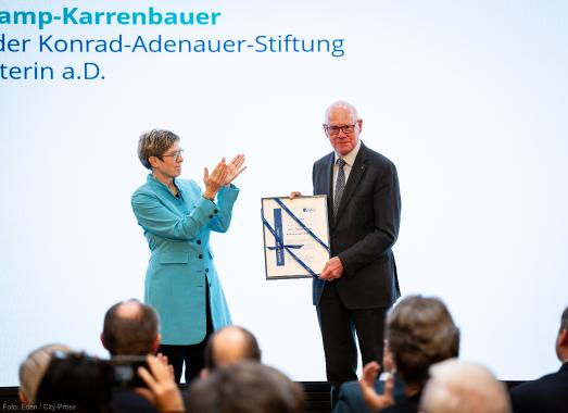 Mit einer feierlichen Veranstaltung wurde der Wechsel an der Spitze der Konrad Adenauer Stiftung (KAS) offiziell vollzogen: Nach acht prägenden Jahren übergab Prof. Dr. Norbert Lammert, Bundestagspräsident a. D., den Vorsitz an Annegret Kramp Karrenbauer, Ministerpräsidentin a. D., ehemalige Bundesverteidigungsministerin und frühere CDU Bundesvorsitzende. Kramp Karrenbauer ist am 19. Dezember 2025 von der Mitgliederversammlung zur neuen Vorsitzenden gewählt worden; Lammert wurde zugleich zum Ehrenvorsitzenden berufen. Rund 300 Mitarbeiterinnen und Mitarbeiter, Mitglieder der Stiftungsgremien sowie Freunde und Weggefährten füllten die Akademie der Adenauer-Stiftung, um Lammert zu würdigen und Kramp-Karrenbauer willkommen zu heißen.