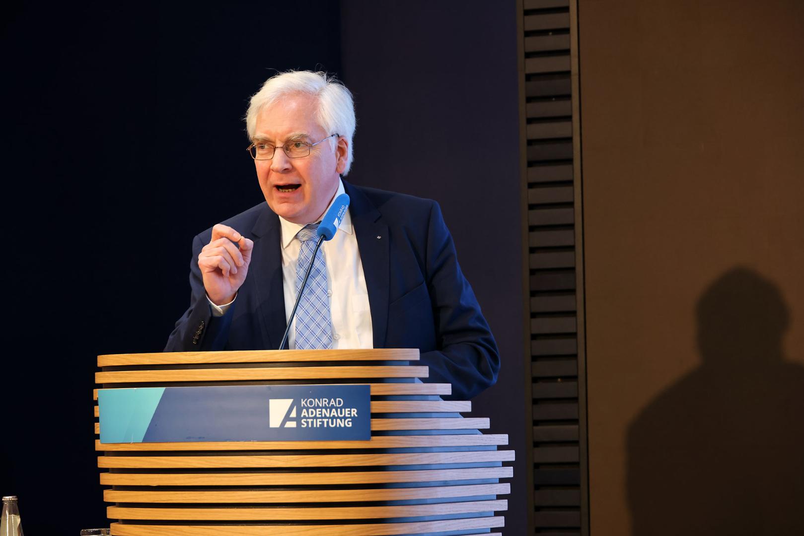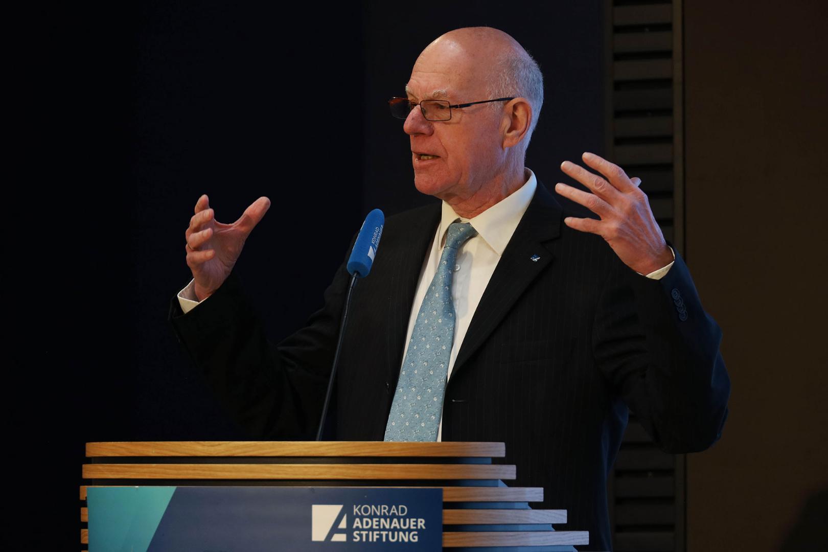 Prof. Dr. Norbert Lammert, Vorsitzender der Konrad-Adenauer-Stiftung, begrüßte die rund 70 Teilnehmerinnen und Teilnehmer zur mittlerweile 19. Veranstaltung der Gesprächsreihe „Die Ära Kohl im Gespräch“. Er unterstrich, dass deren Ziel nicht die „Arbeit am Denkmal“ sei, sondern ein Beitrag zur kritischen Aufarbeitung der Geschichte der Bundesrepublik und der CDU, die zu den in der Satzung festgeschriebenen Aufgaben der Stiftung zähle. Helmut Kohl, der ein bekennender Vertreter der Ökumene gewesen sei, habe um die Bedeutung von Kirche und Religion für den gesellschaftlichen Zusammenhalt gewusst. Dennoch sei er – wenn für nötig erachtet – vor Konflikten mit der Amtskirche nicht zurückgeschreckt. Dass das Thema „Helmut Kohl und die Kirchen“ in dem Jahr aufgegriffen werde, indem die Mitglieder der Kirchen sich in Deutschland erstmals in der Minderheit befinden, verleihe ihm zusätzliche Aktualität.