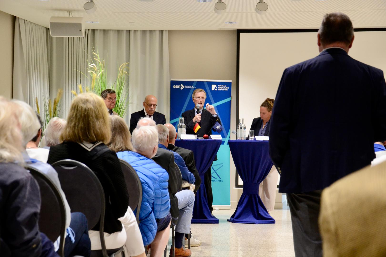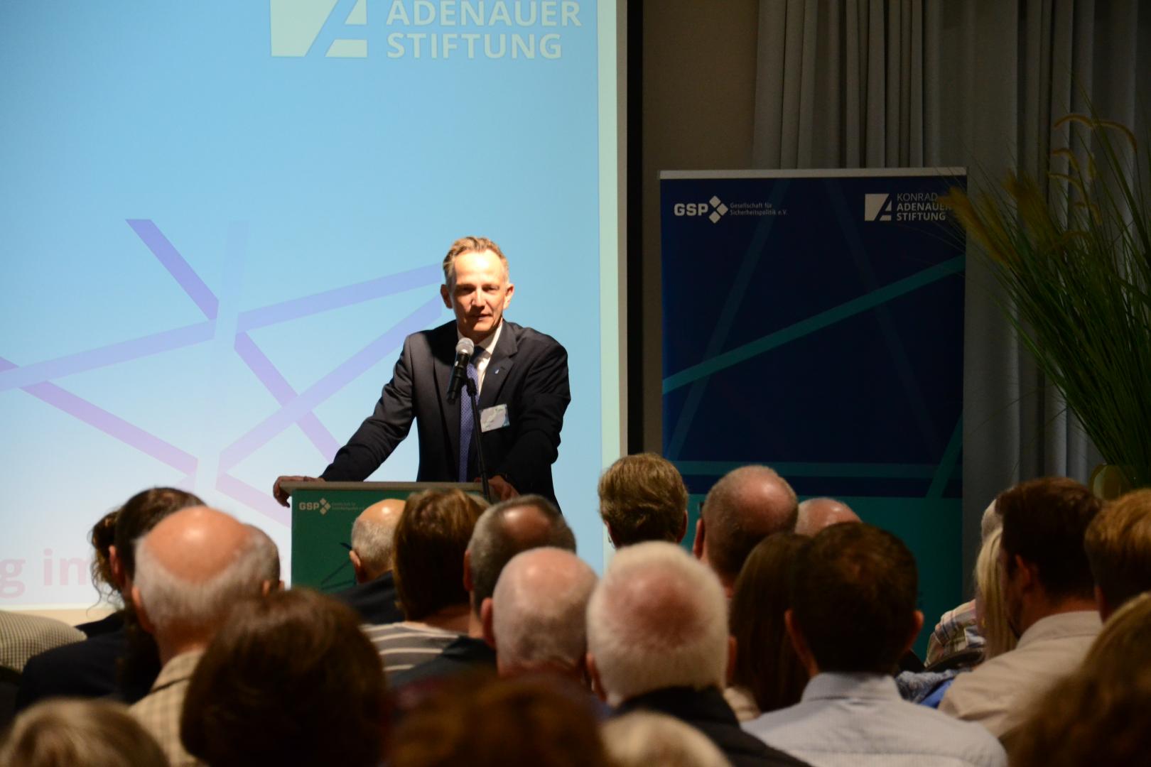 Herr Bors, Landesbeauftragter der Konrad-Adenauer-Stiftung für Niedersachsen, eröffnete die Veranstaltung, stellte die Referenten vor und führte in das Thema der Veranstaltung ein. Brigadegeneral Meyer zum Felde, Landesvorsitzender der Gesellschaft für Sicherheitspolitik, führte die Einführung aus militärischer Sicht fort. Daran schloss sich eine politische Einführung durch Colette Thiemann MdL, der Beauftragten für die Bundeswehr der CDU-Landtagsfraktion Niedersachsen an.