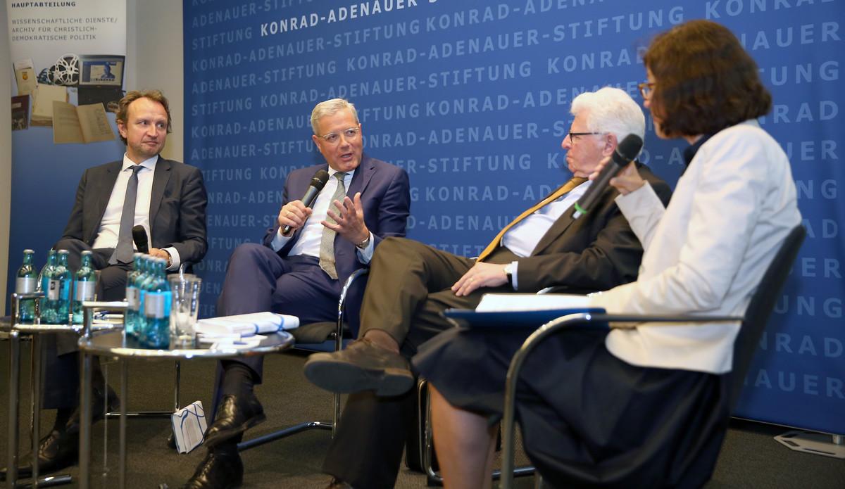 La Fondation Konrad-Adenauer, ses instituts, centres de formation et bureaux à l'étranger proposent tous les ans uin grand nombre de manifestations dédiées à des thèmes différents. À l'adresse www.kas.de, nous vous présentons, de manière actuelle et exclusive, des conférences, événements et symposiums. Outre un résumé thématique, vous trouverez ici aussi du matériel supplémentaire tel que des photos, des manuscrits de discours, des vidéos ou des podcasts radio.