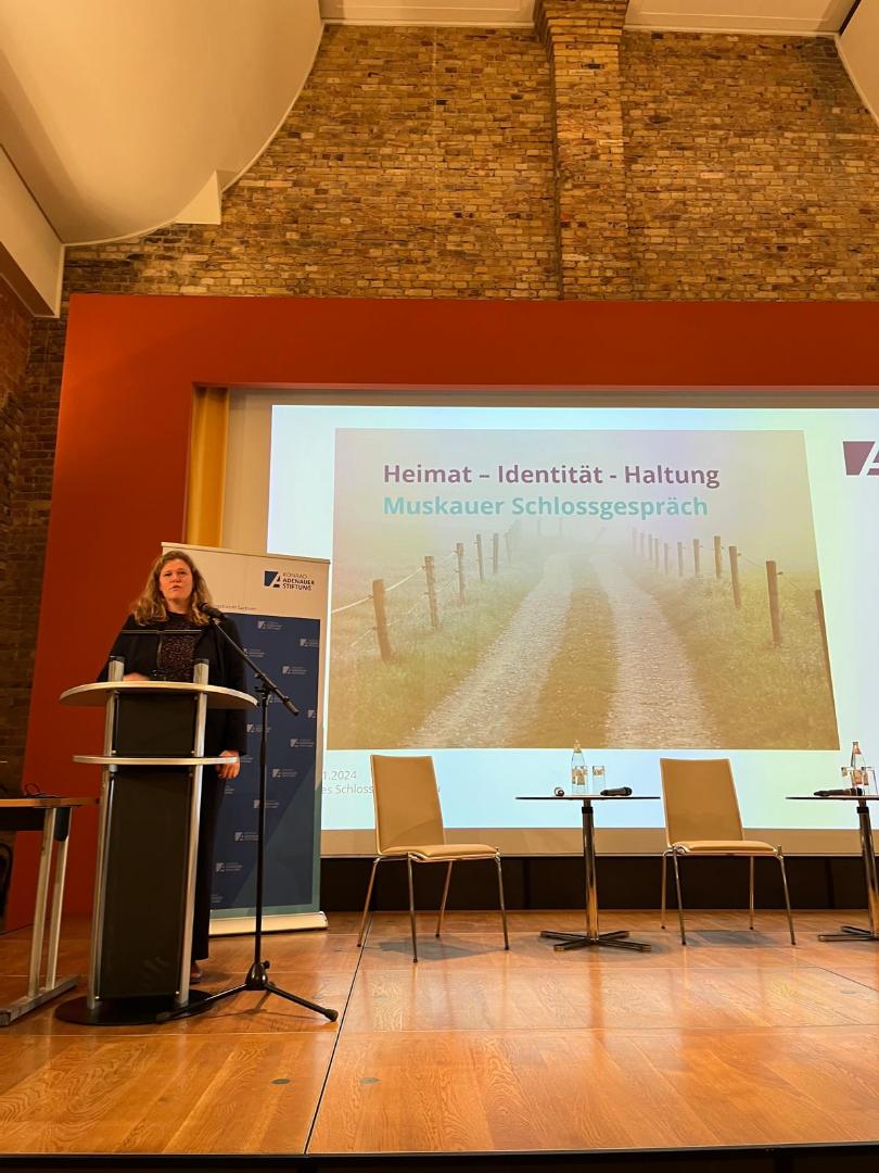 Im Ambiente des Muskauer Neuen Schlosses fand das jährliche Schlossgespräch des Politischen Bildungsforums Sachsen zum Thema „Heimat – Identität – Wirkung“ statt. Lina Berends, Referentin des Politischen Bildungsforums, eröffnete die Veranstaltung mit einer persönlichen Einführung in den Begriff „Heimat“. Sie betonte, dass Heimat für sie sowohl ihr Herkunftsort als auch ihr jetziger Lebensort sei und wies darauf hin, dass dieser Begriff aktuell oft kritisch betrachtet werde. Besonders hob sie die sorbische Geschichte und den Verlust von Sprache und Kultur hervor, wobei sie die Frage aufwarf, wie die Politik das kulturelle Erbe besser schützen und bewahren könnte.