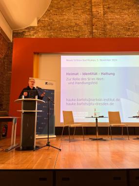 Der zweite Vortrag wurde von Prof. Dr. Hauke Bartels vom Sorbischen Institut in Bautzen gehalten. Bartels erläuterte die historische Entwicklung und die zentralen Aufgaben des Sorbischen Instituts, das 1951 gegründet wurde. Das Institut widmet sich der Erforschung und Pflege der sorbischen Sprache sowie der Kultur und Geschichte der Sorben. Bartels stellte das sorabistische Wissensportal SORABICON vor und sprach über das Ziel, das sorbisch-wendische Kulturerbe systematisch zu registrieren und digital zugänglich zu machen. Diese digitalen Projekte und die Erfassung kultureller Artefakte sollen dazu beitragen, das sorbische Kulturgut nachhaltig zu bewahren und zugänglich zu machen.